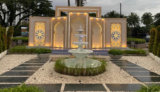 Memasuki area dekor, Anda akan disambut nuansa Islami yang elegan dan menenangkan. Ornamen-ornamen cantik berpadu harmonis dengan taman hijau yang tertata rapi, dilengkapi air mancur yang mengalir lembut dan alunan musik yang menciptakan suasana syahdu.